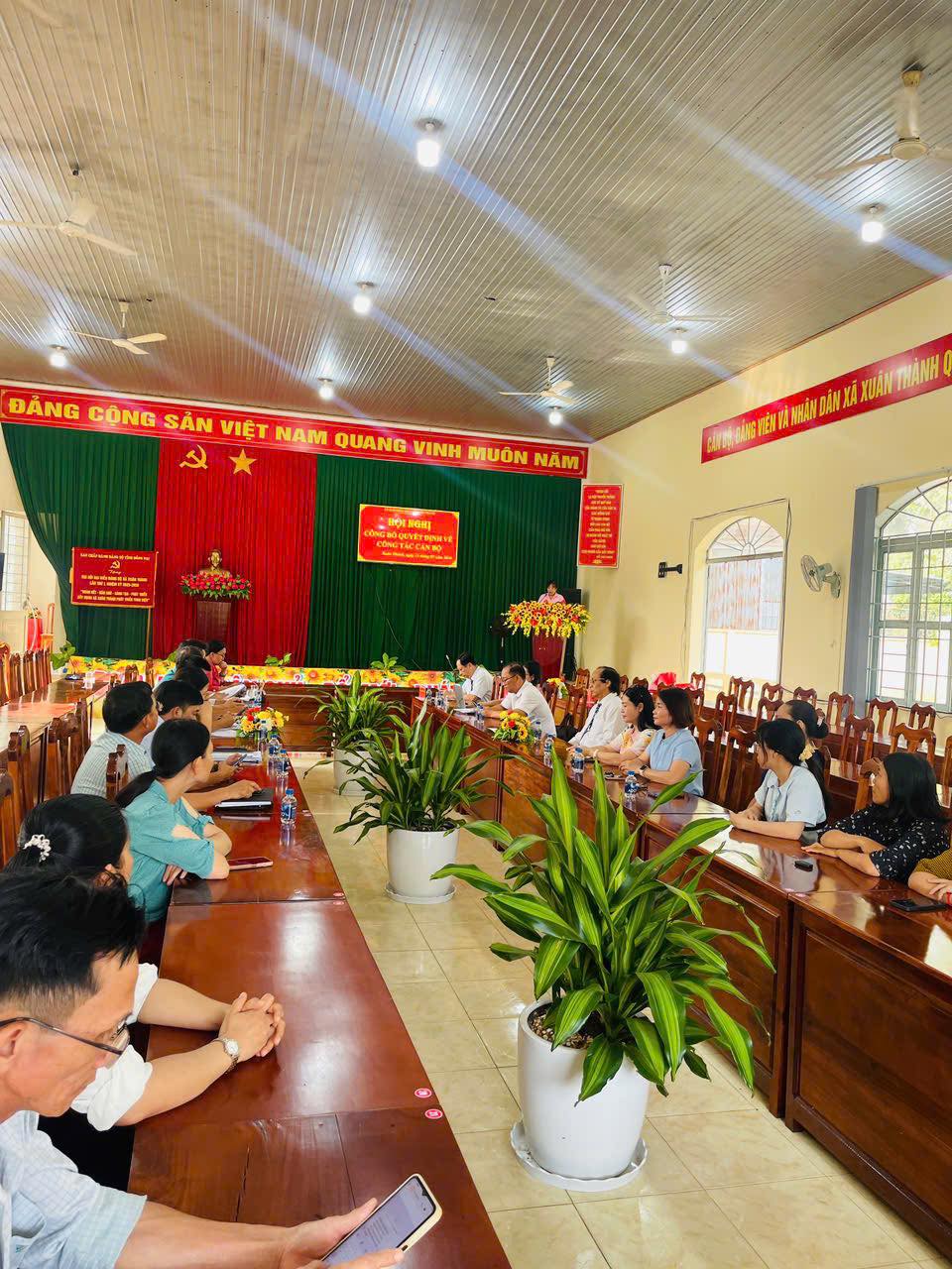 Tại Hội nghị, đồng chí Ngô Tùng Thiện- Trưởng phòng Văn hóa – Xã hội đã công bố các Quyết định của UBND xã về việc thành lập Trạm Y tế xã Xuân Thành và Quyết định bổ nhiệm Phó Giám đốc Trạm Y tế xã Xuân Thành; đồng thời, giao phụ trách Trạm Y tế xã Xuân Thành trong thời gian khuyết Giám đốc. Qua đó đồng chí Võ Long Sơn được bổ nhiệm giữ chức vụ Phó giám đốc trạm y tế xã Xuân Thành.