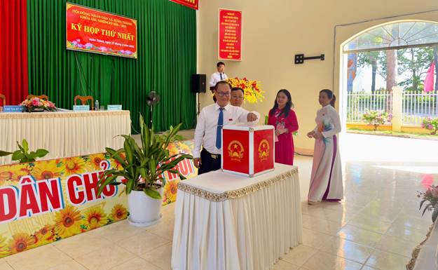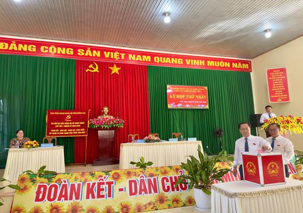 Cùng tại kỳ họp, HĐND xã đã thực hiện quy trình bầu các chức danh của UBND xã nhiệm kỳ mới. Theo đó, đ/c Nguyễn Thị Thùy Linh, Phó Bí thư Đảng ủy, Chủ tịch UBND xã nhiệm kỳ 2021-2026 được bầu giữ chức Chủ tịch UBND xã nhiệm kỳ 2026-2031. Hai đ/c Phó Chủ tịch UBND xã gồm đ/c Lê Anh Việt và đ/c Huỳnh Thanh Thoảng. Kỳ họp cũng bầu các Ủy viên UBND xã nhiệm kỳ 2026 - 2031 theo đúng quy định, đảm bảo tiêu chuẩn, điều kiện, đáp ứng yêu cầu nhiệm vụ trong tình hình mới. Các chức danh được bầu đều đạt số phiếu tín nhiệm cao, thể hiện sự thống nhất, đồng thuận của các đại biểu HĐND xã.