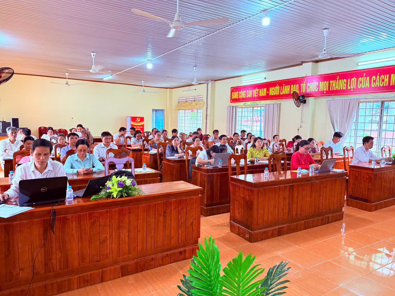 Đ/c Huỳnh Thanh Thoảng – Phó Chủ tịch UBND xã cùng lãnh đạo và chuyên viên các phòng, ban chuyên môn; lãnh đạo các trường học tham dự tập huấn.