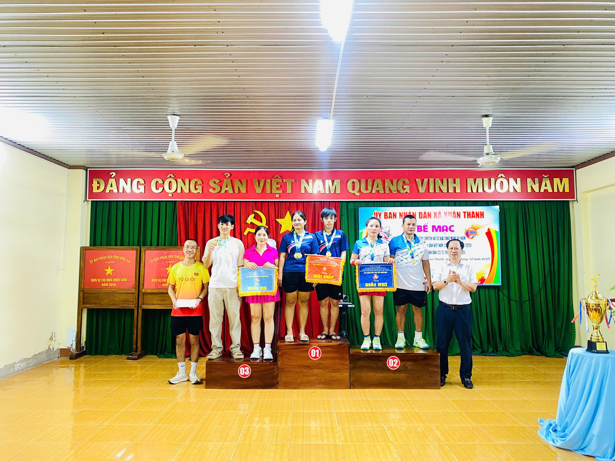 Chiều ngày 12/12/2025, giải thi đấu bóng chuyền nam, cầu lông và cờ vua năm 2025 xã Xuân Thành đã chính thức bế mạc sau một ngày thi đấu sôi nổi, quyết liệt và đầy tinh thần thể thao. Dự lễ bế mạc có đồng chí Lâm Hữu Tú – Bí thư Đảng ủy, Chủ tịch Hội đồng nhân dân xã; Đồng chí Nguyễn Thị Thùy Linh – Phó Bí thư Đảng ủy, Chủ tịch UBND xã; các đồng chí là Lãnh đạo các đoàn thể xã, Lãnh đạo các phòng ban chuyên môn của UBND xã. Các đồng chí Trưởng các ấp, Ban giám hiệu các trường học trên địa bàn xã.